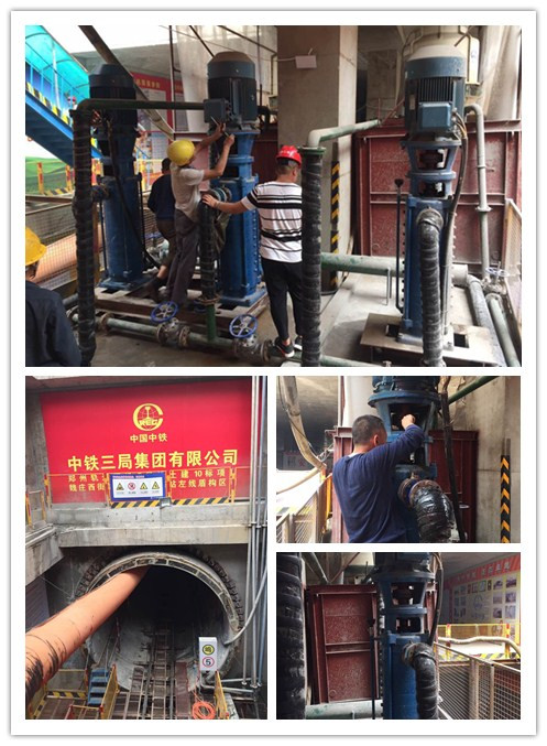 鄭州市軌道交通五號線建設(shè)項目,自2016年8月3日,采購我司立式多級泵組型號80DL54-20*10,數(shù)量3套,水泵流量54立方/小時,揚程200米,配套功率55KW,擔負盾構(gòu)機主供水設(shè)備。